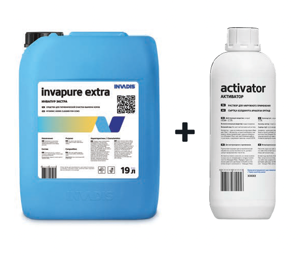 Упаковка: канистры Invapure Extra и флаконы/канистры Activator с оригинальной маркировкой производителя Invadis.